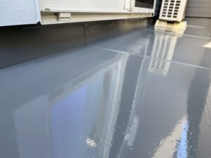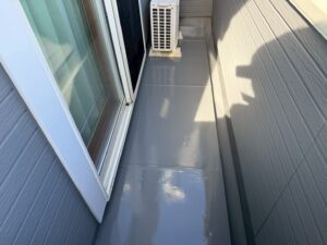 外壁・2Fベランダ床面・ケレン処理、塗り直し施工後です。