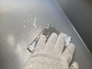 外壁・旧コーキング材撤去:ニッパー(小さいペンチ)等を使い剥ぎ取ります。