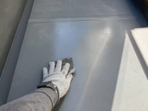 外壁・2Fベランダ床面・ケレン処理、塗り直し施工:しっかり乾燥させます。