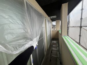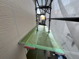 外壁・2Fベランダ内部廻り・養生の施工です。