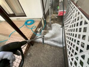 外部・駐車場土間:バイオ高圧洗浄施工中です。