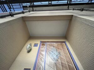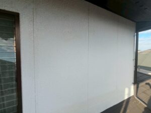 外壁・南面ベランダ側・破風板、雨樋の下塗り(バインダー)の施工後です。