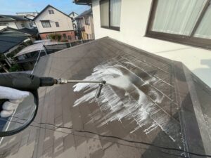 外壁・屋根:バイオ高圧洗浄施工中です。