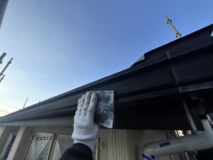 外壁・破風板(幕板)のケレン処理施工後、専用下塗り(バインダー)の施工です。