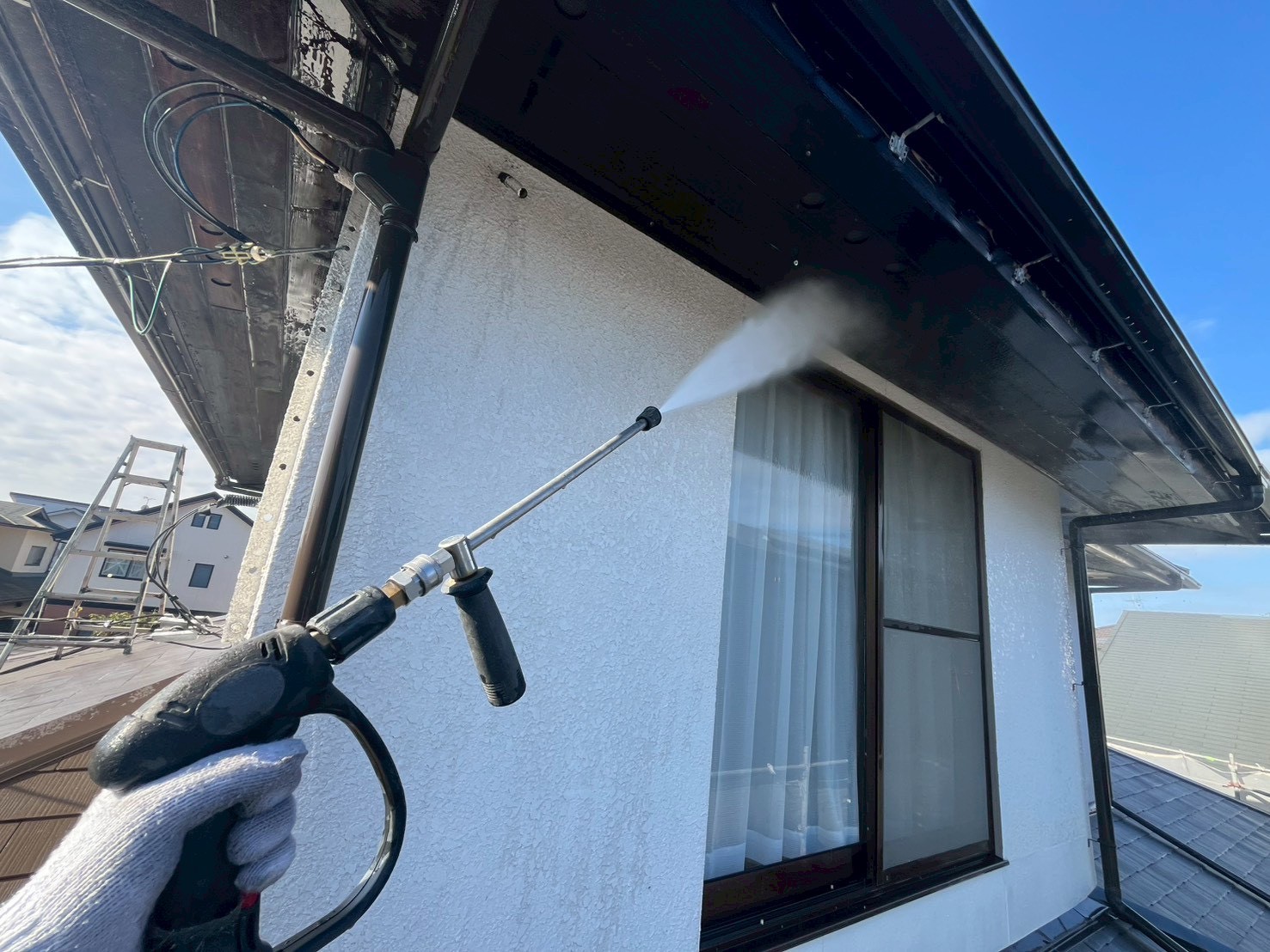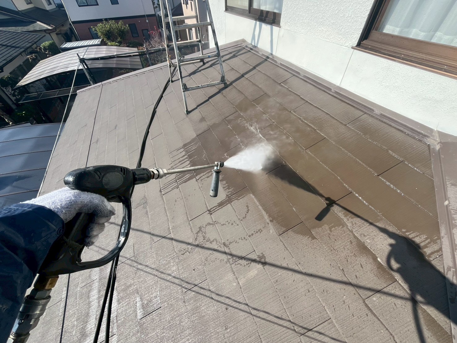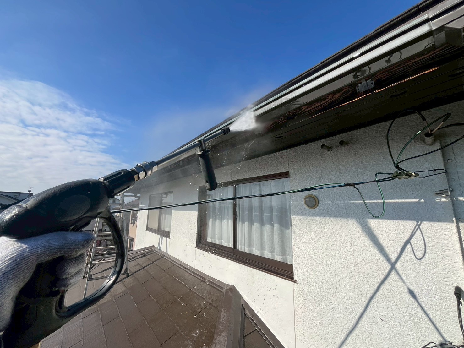 外壁・屋根:バイオ高圧洗浄施工中です。