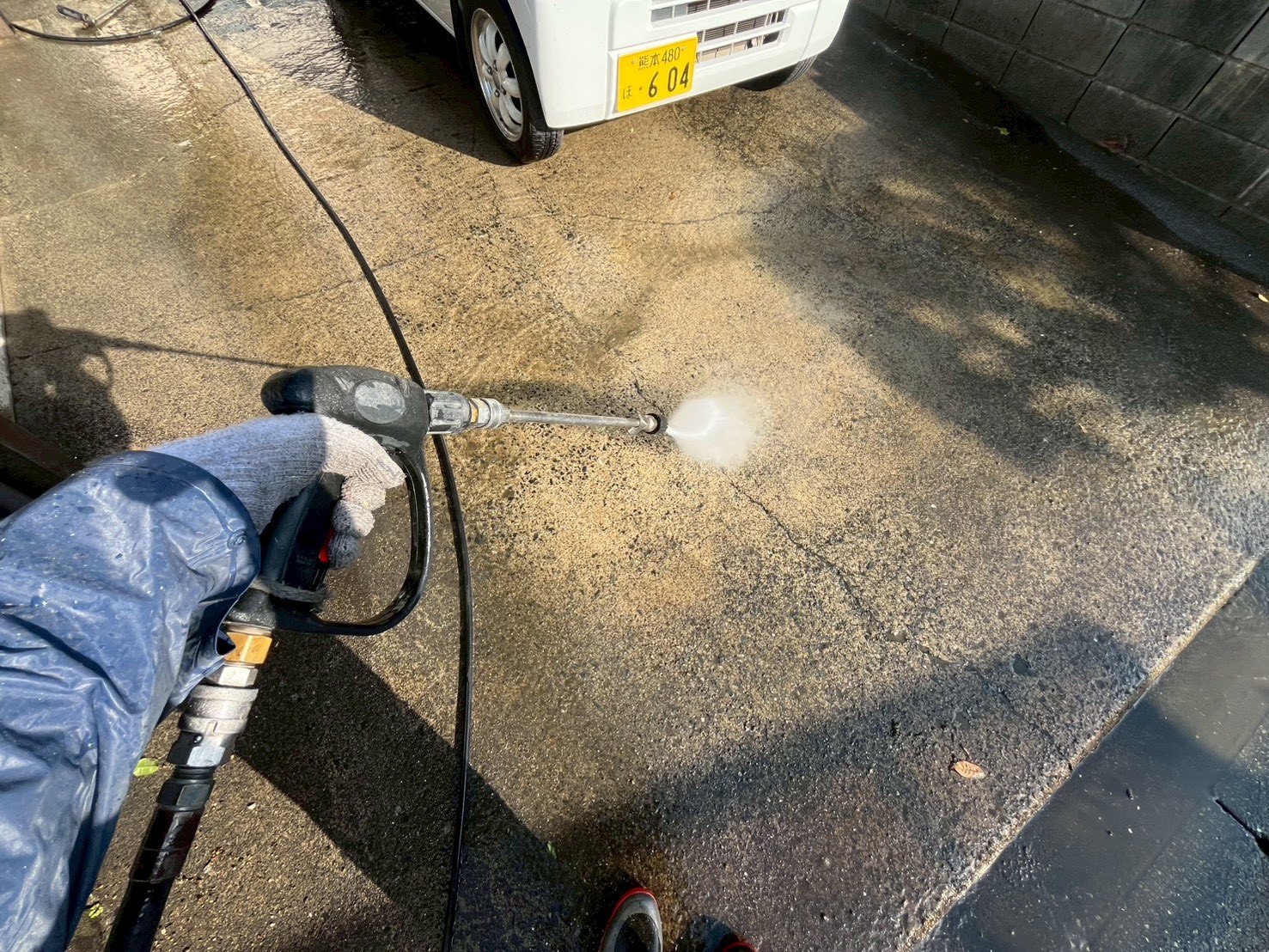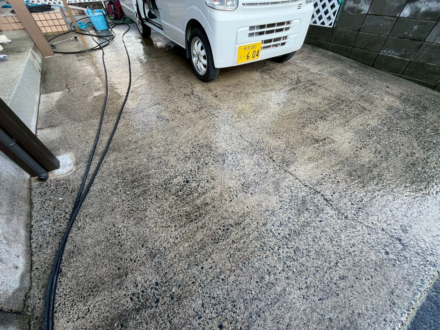 外部・駐車場土間:バイオ高圧洗浄施工中です。