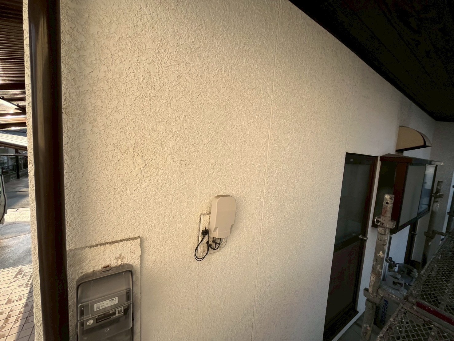 外壁・南面ベランダ側・破風板、雨樋の下塗り(バインダー)の施工後です。
