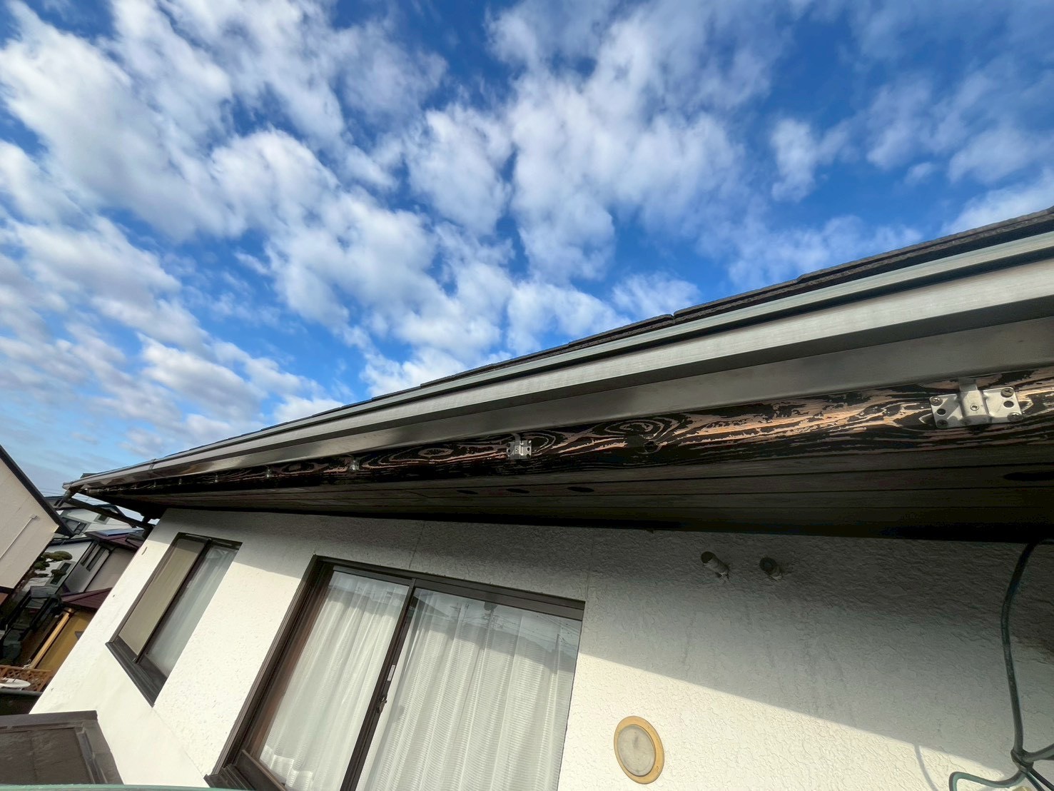 外壁・2F軒天・ブラックからホワイト色に塗り替えです。
