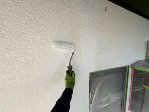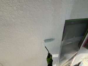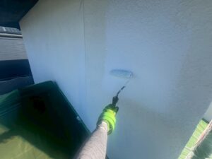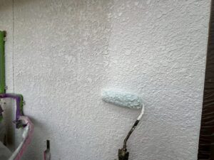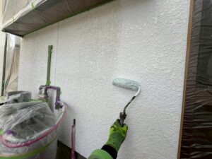 外壁・壁面1F/2F:下塗り・水性SDサーフエポプレミアムのローラー塗り施工:材料を均等に塗布します。