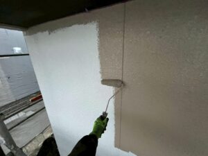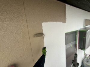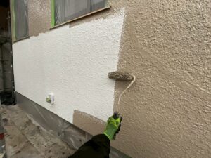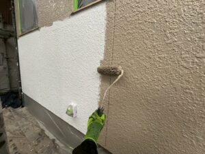 外壁・1F/2F壁面・中塗り:KF無機4フッ化フッ素樹脂の施工です。