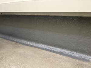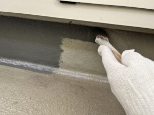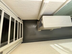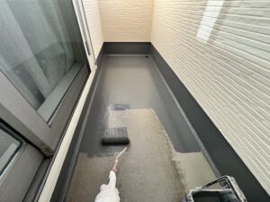外壁・2Fベランダ床面・トップコートグレー色の施工:しっかり乾燥させます。
