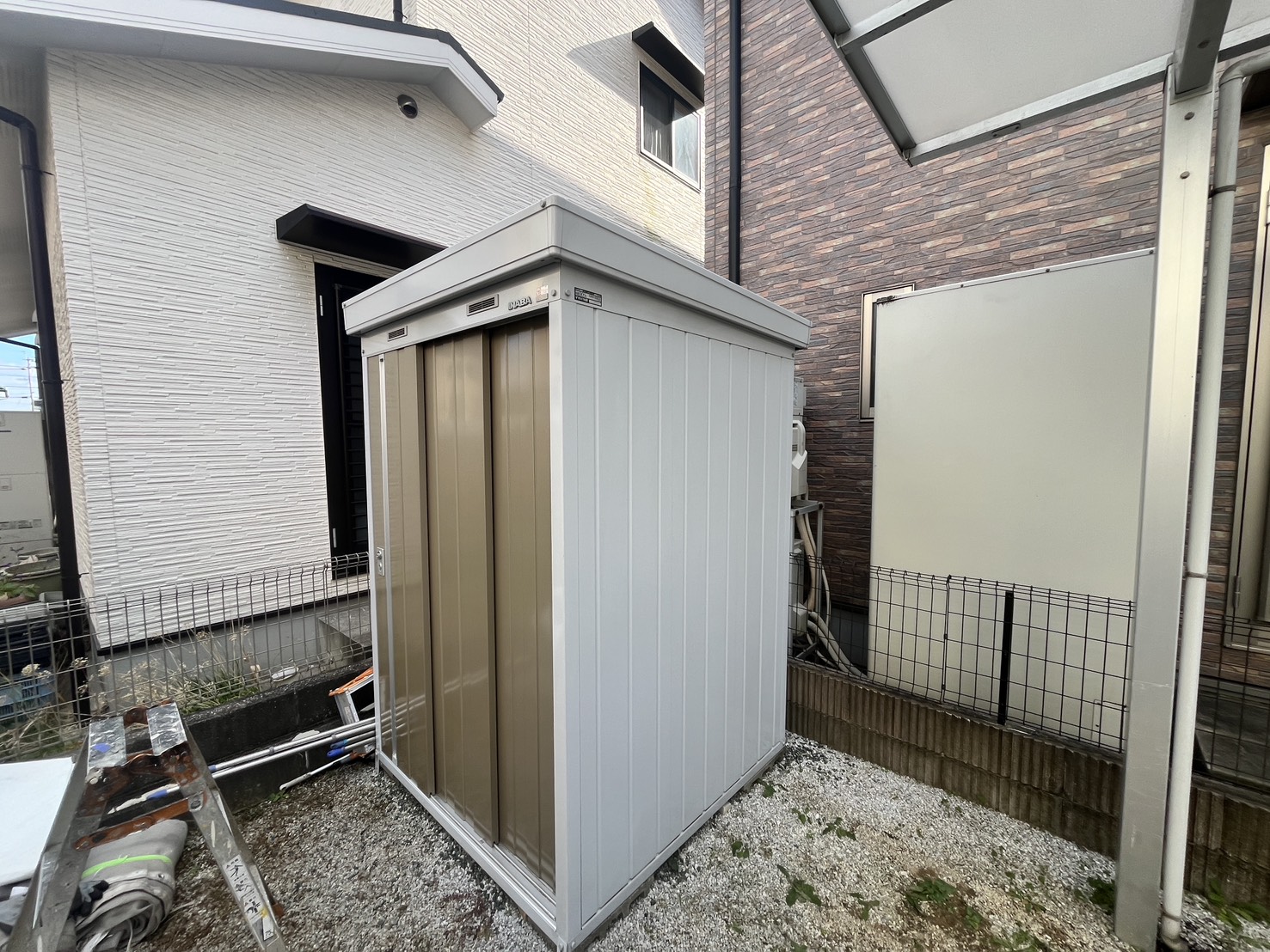 外部・倉庫(物置)パラペット部の拭き掃除を行いました。