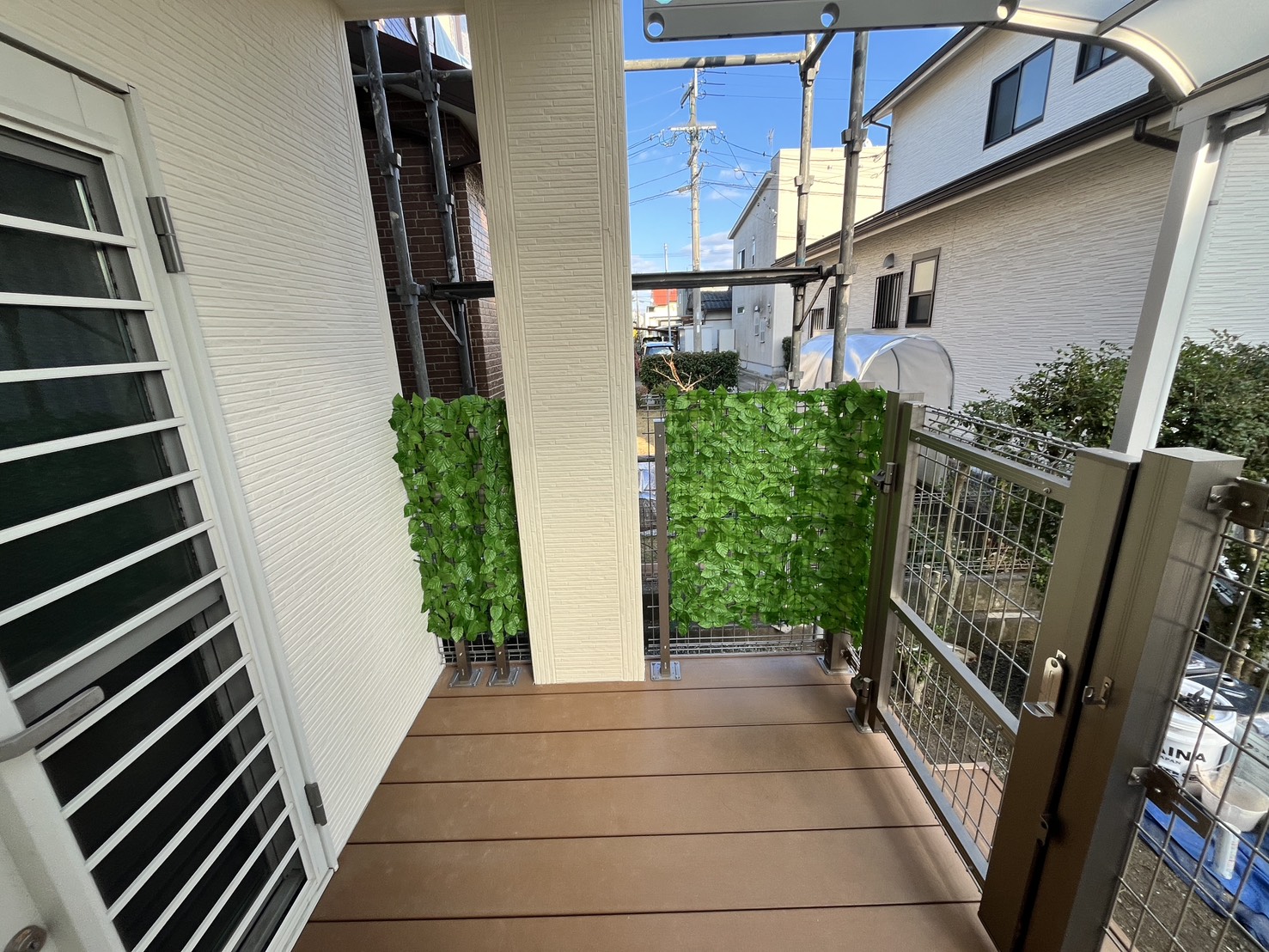 外部・デッキ目隠し飾りの取り付けです。(インシロックで取り付けを行いました)