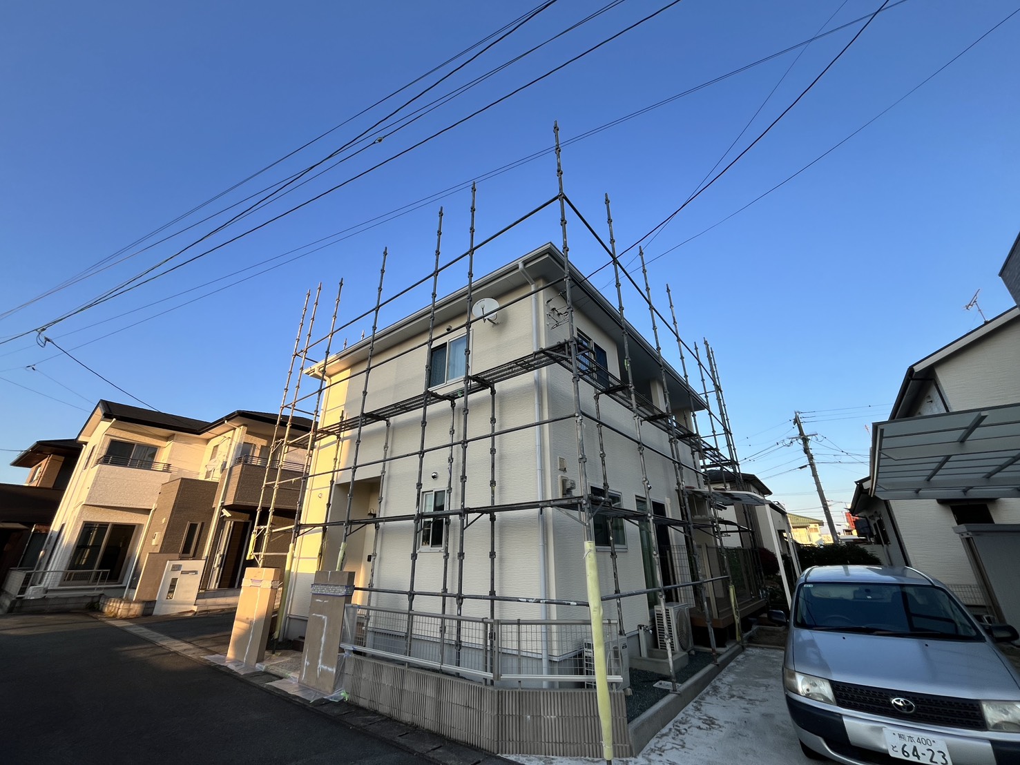 本日の作業は、外壁・屋根:最終確認検査後、確認仕上げ・片付け・掃除仕上げの施工です。