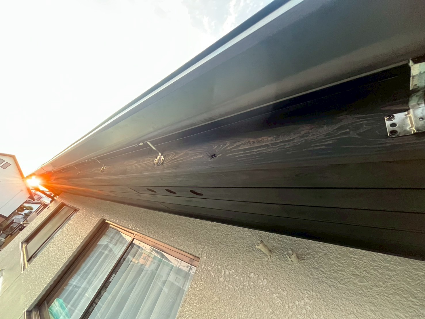 外壁・破風板(幕板)高性能木部保護剤・上塗り仕上げキシラデコール#エボニーの着色施工です。