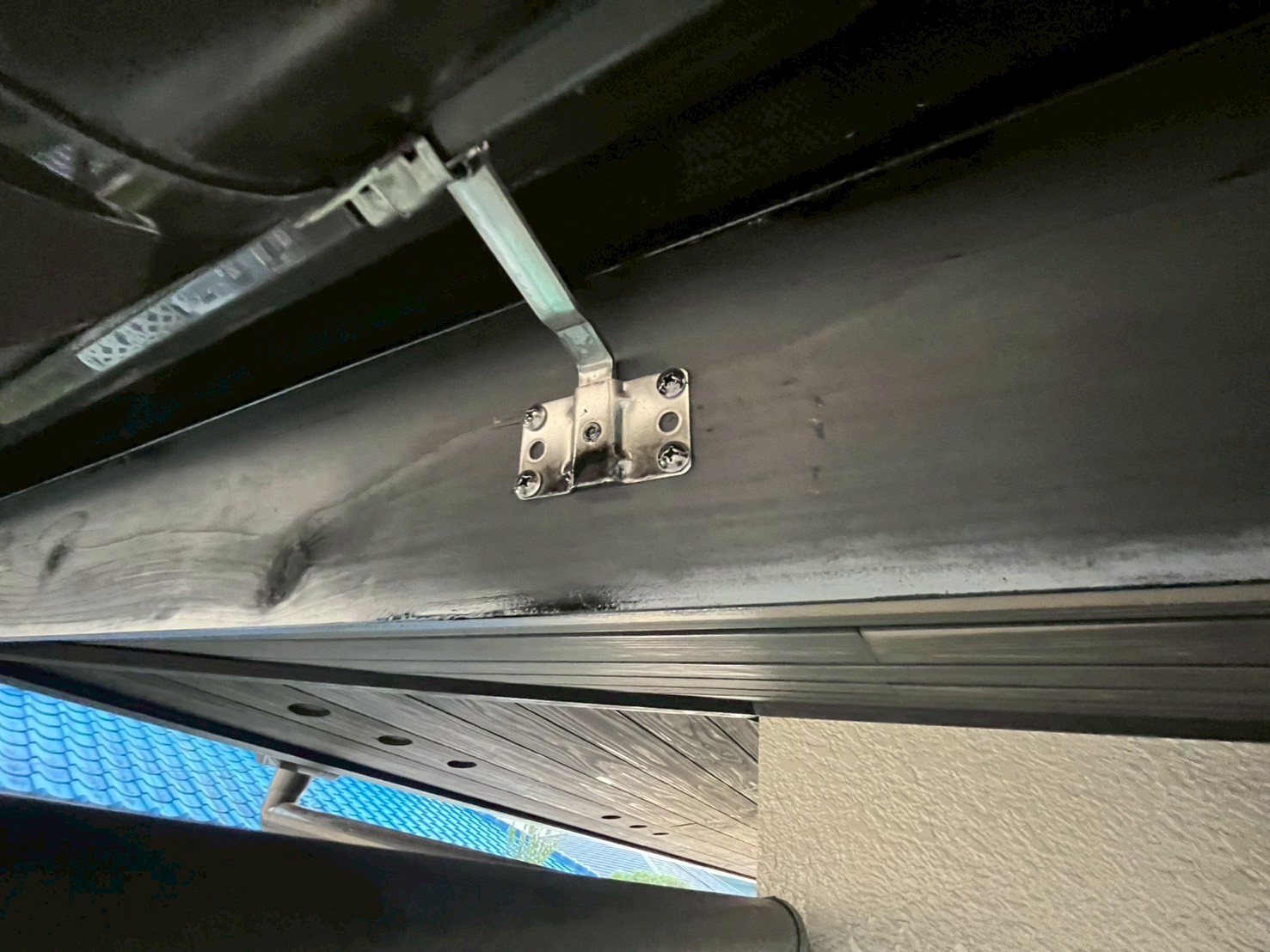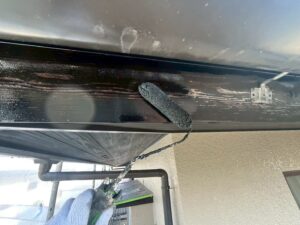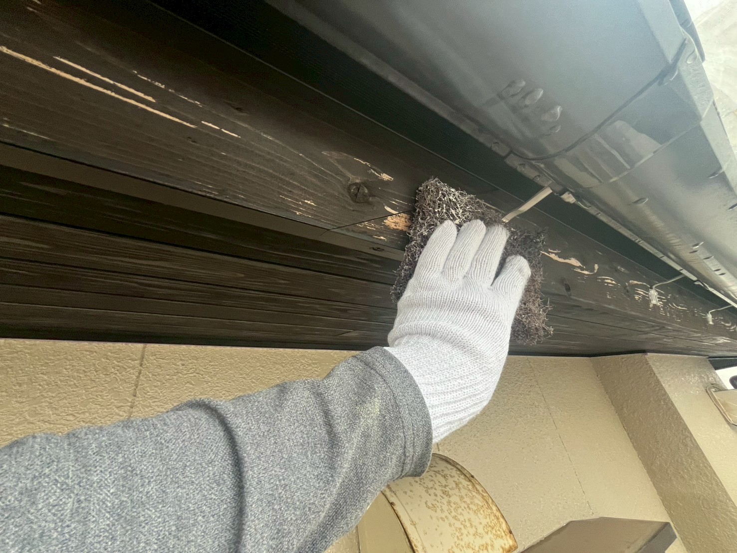 外壁・破風板(幕板)高性能木部保護剤キシラデコール#エボニーの施工:ケレン処理を行います。