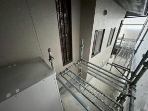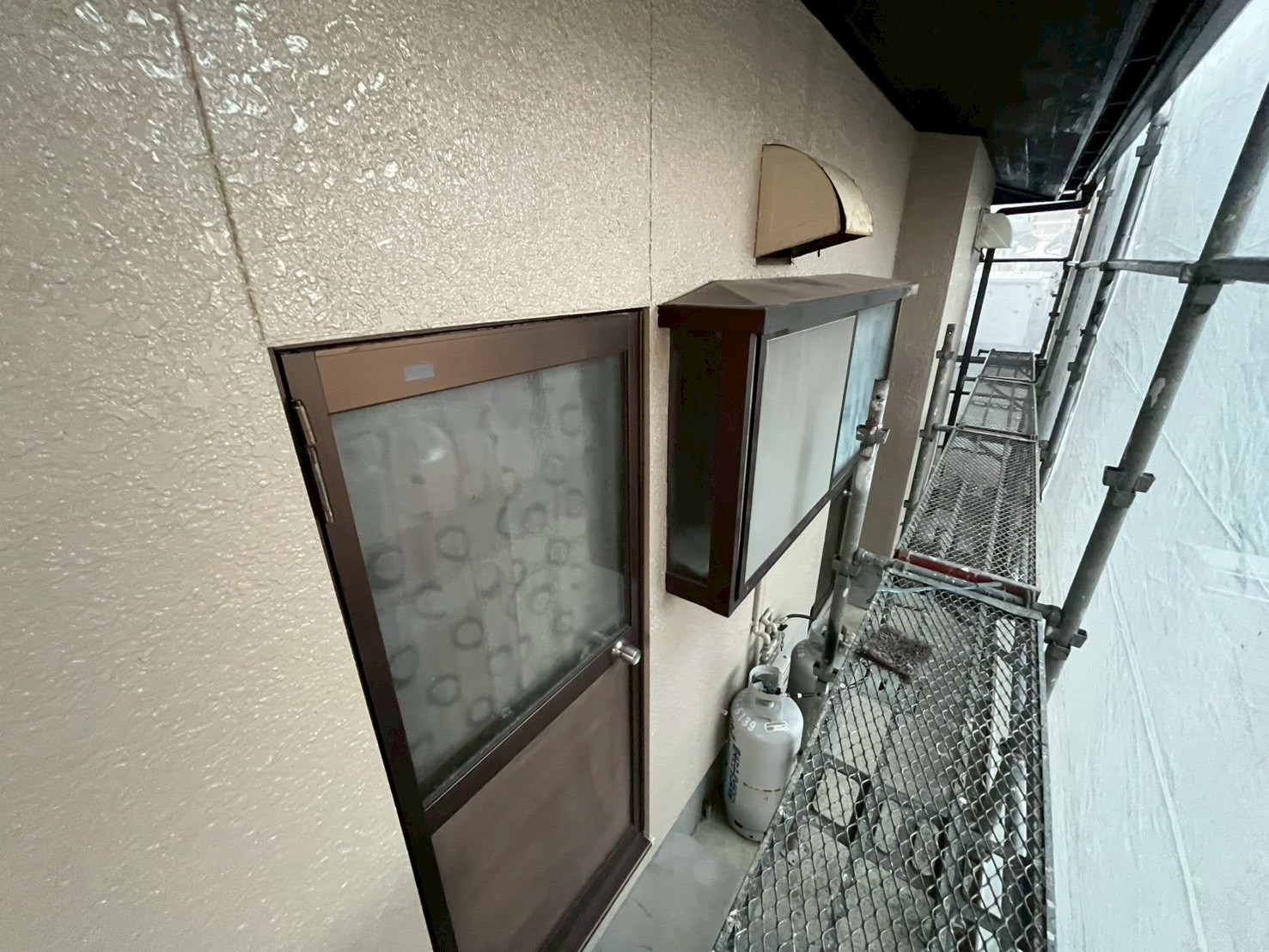 外壁・勝手口廻り・上塗り仕上げ:KF無機4フッ化フッ素樹脂の施工後です。