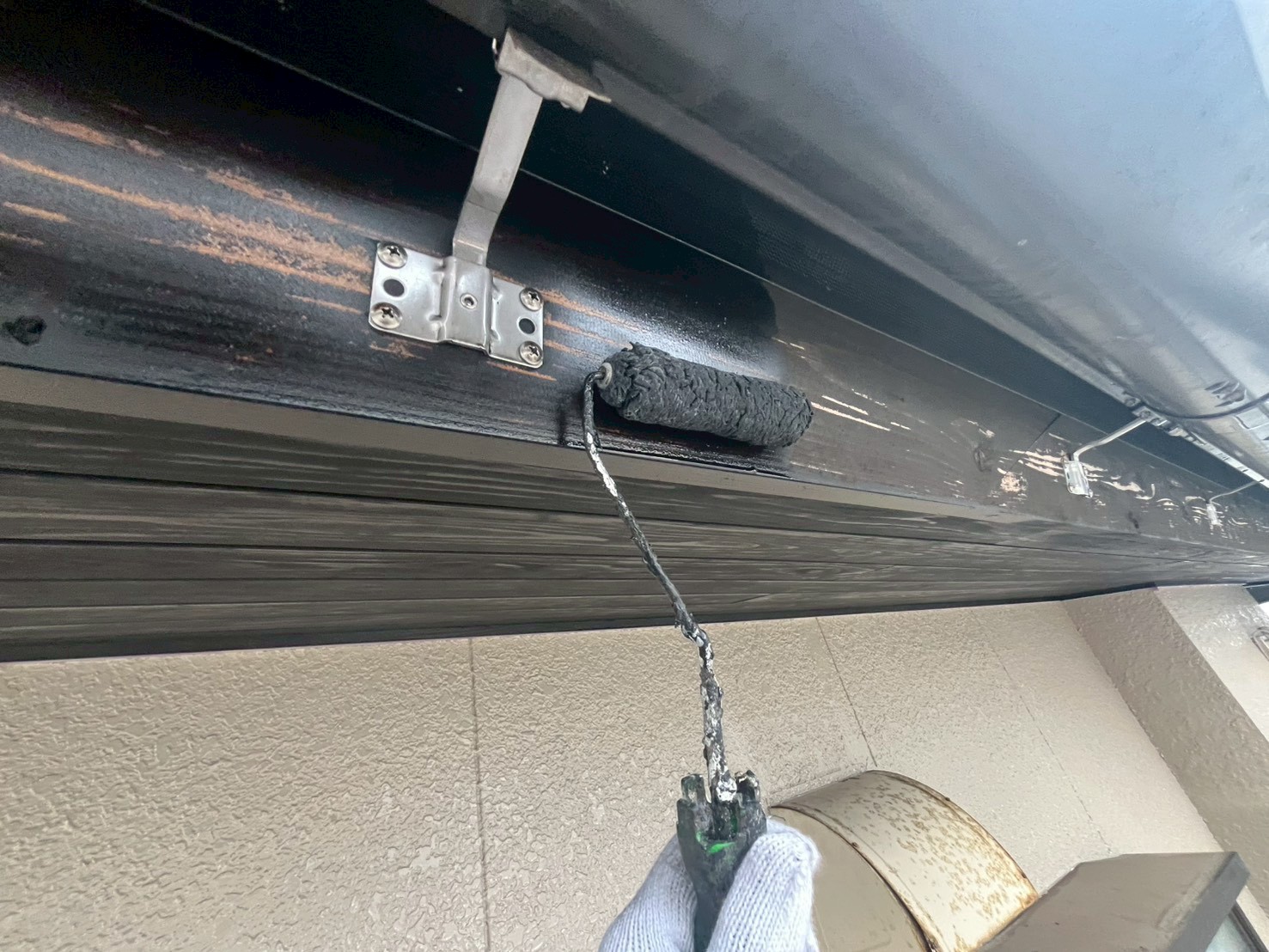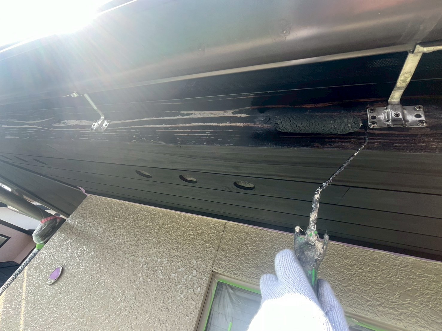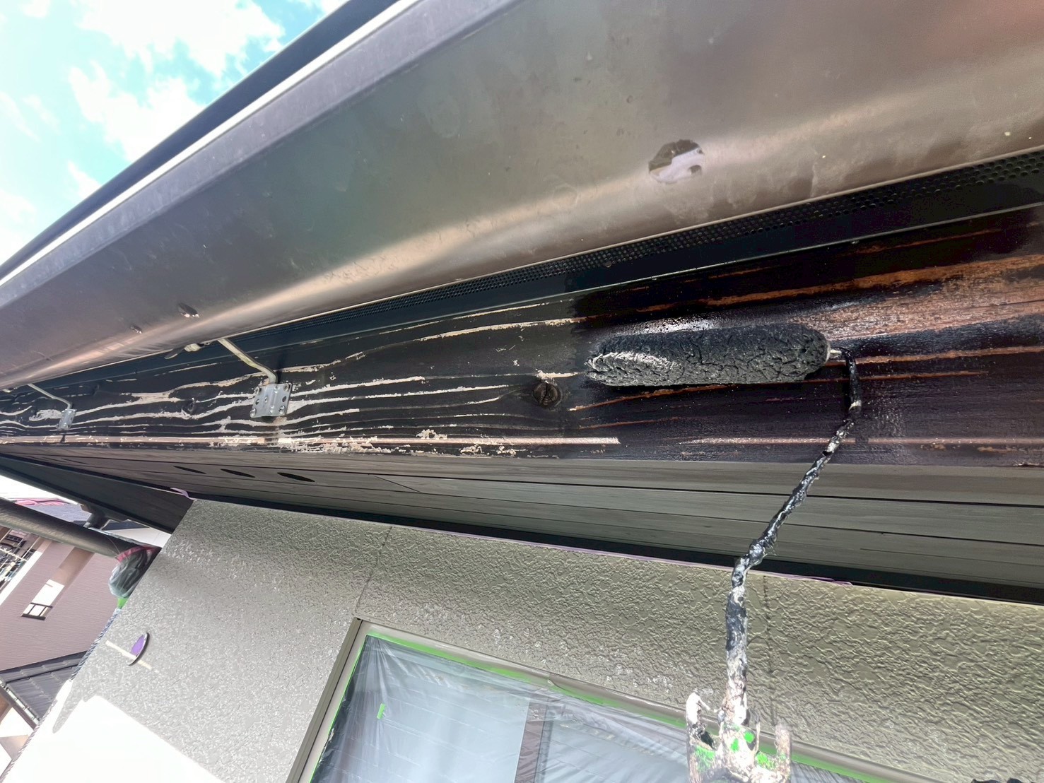 外壁・破風板(幕板)高性能木部保護剤キシラデコール#エボニーの着色施工:しっかり浸透させます。