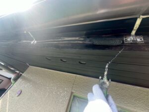 外壁・破風板(幕板)高性能木部保護剤キシラデコール#エボニーの着色施工:しっかり乾燥させます。