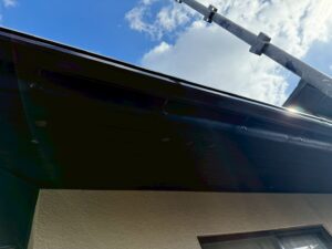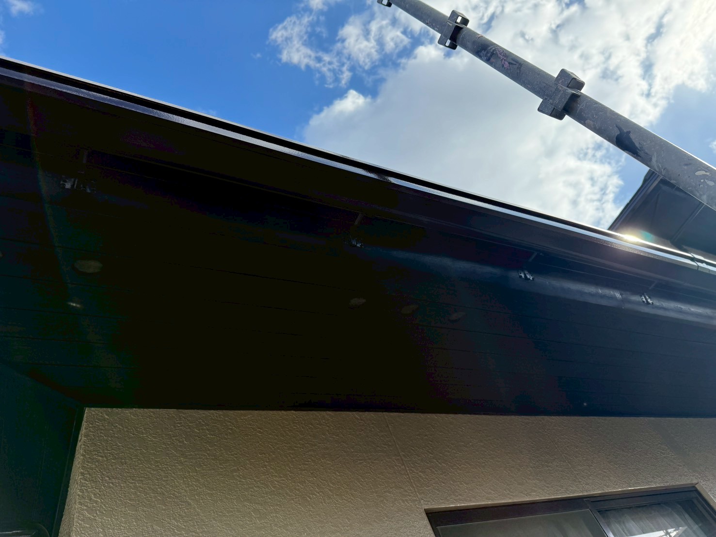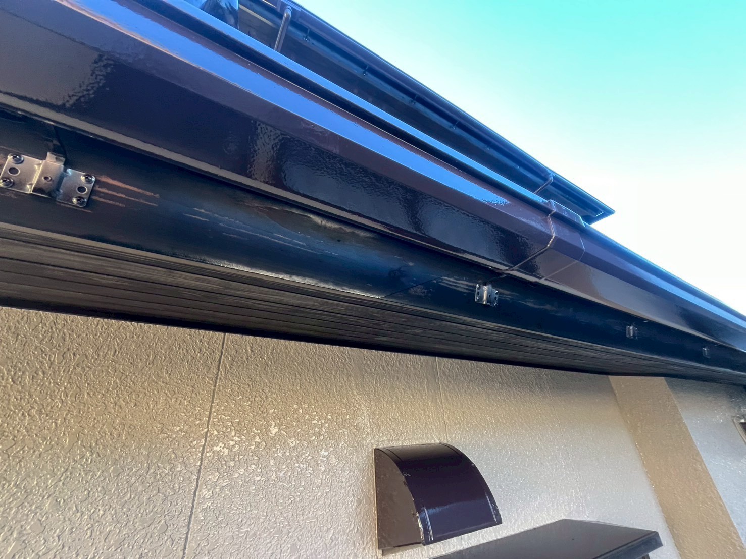外壁・破風板・雨樋:KF無機4フッ化フッ素樹脂コーヒーブラウン色の施工仕上がりです。