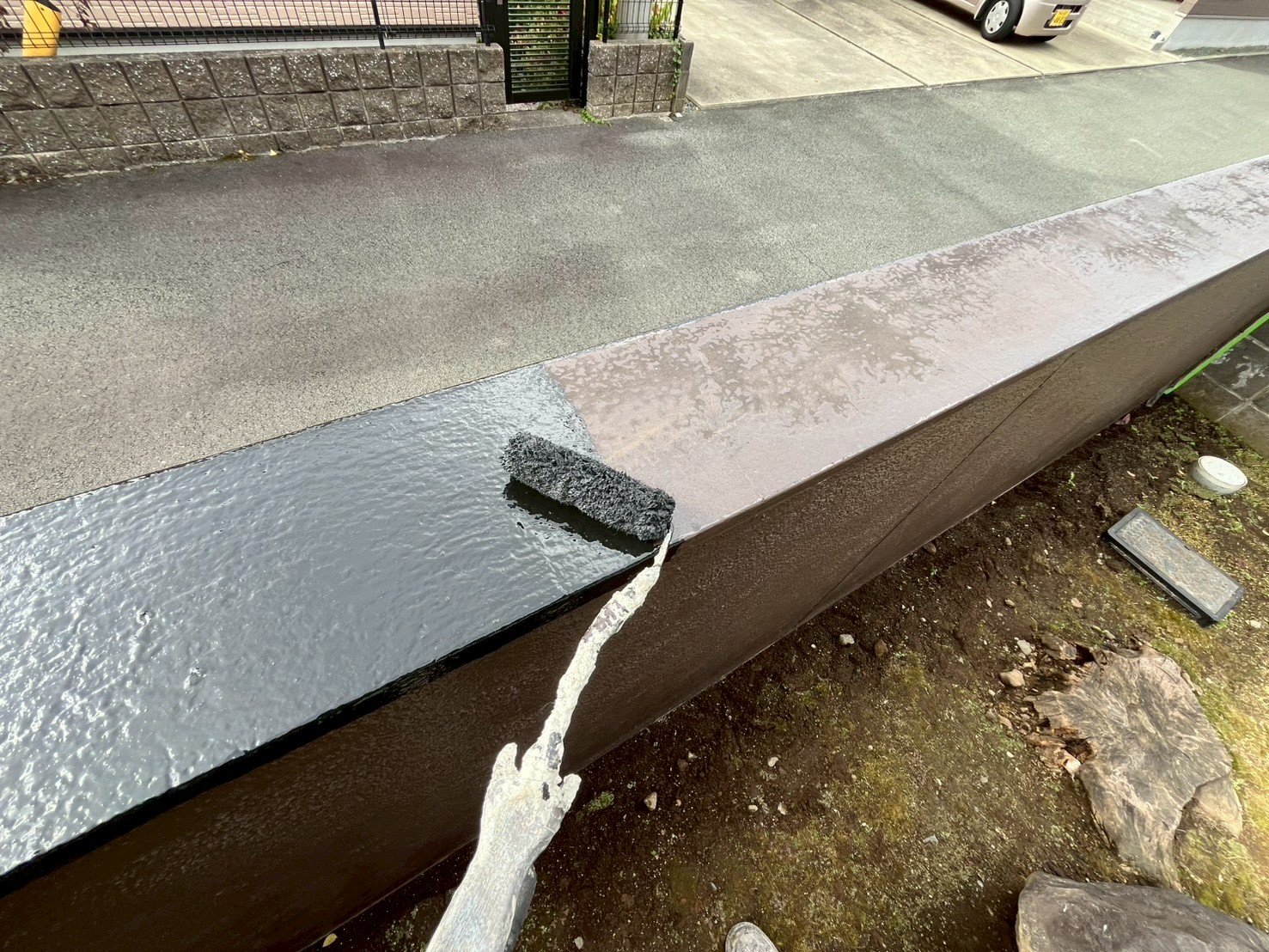 外壁・外部門柱塀笠木・ラジカル塗料ブラック色の施工です。