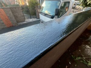 外壁・外部門柱塀笠木・ラジカル塗料ブラック色の施工仕上がりです。