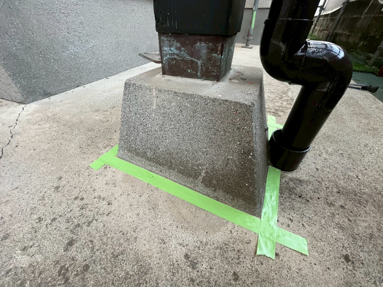 外壁・1F柱架台・ラジカル塗料ブラック色の施工前です。