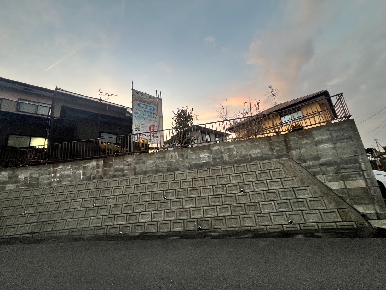 架設足場に看板シート取り付けを行いました。