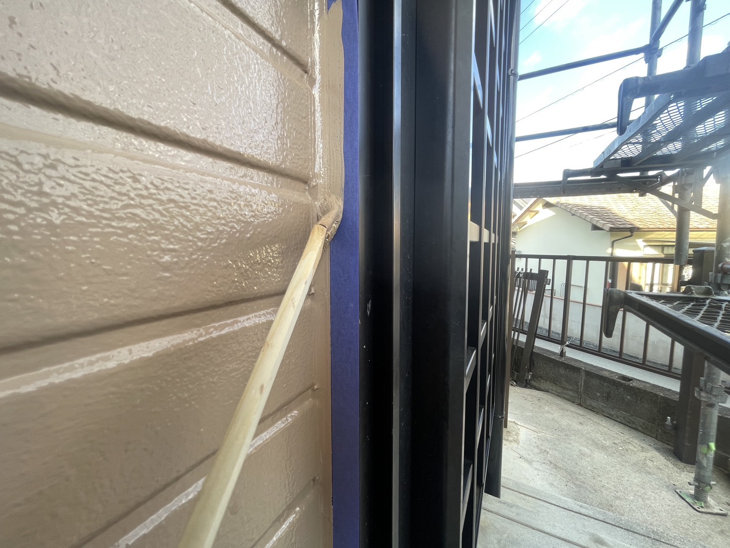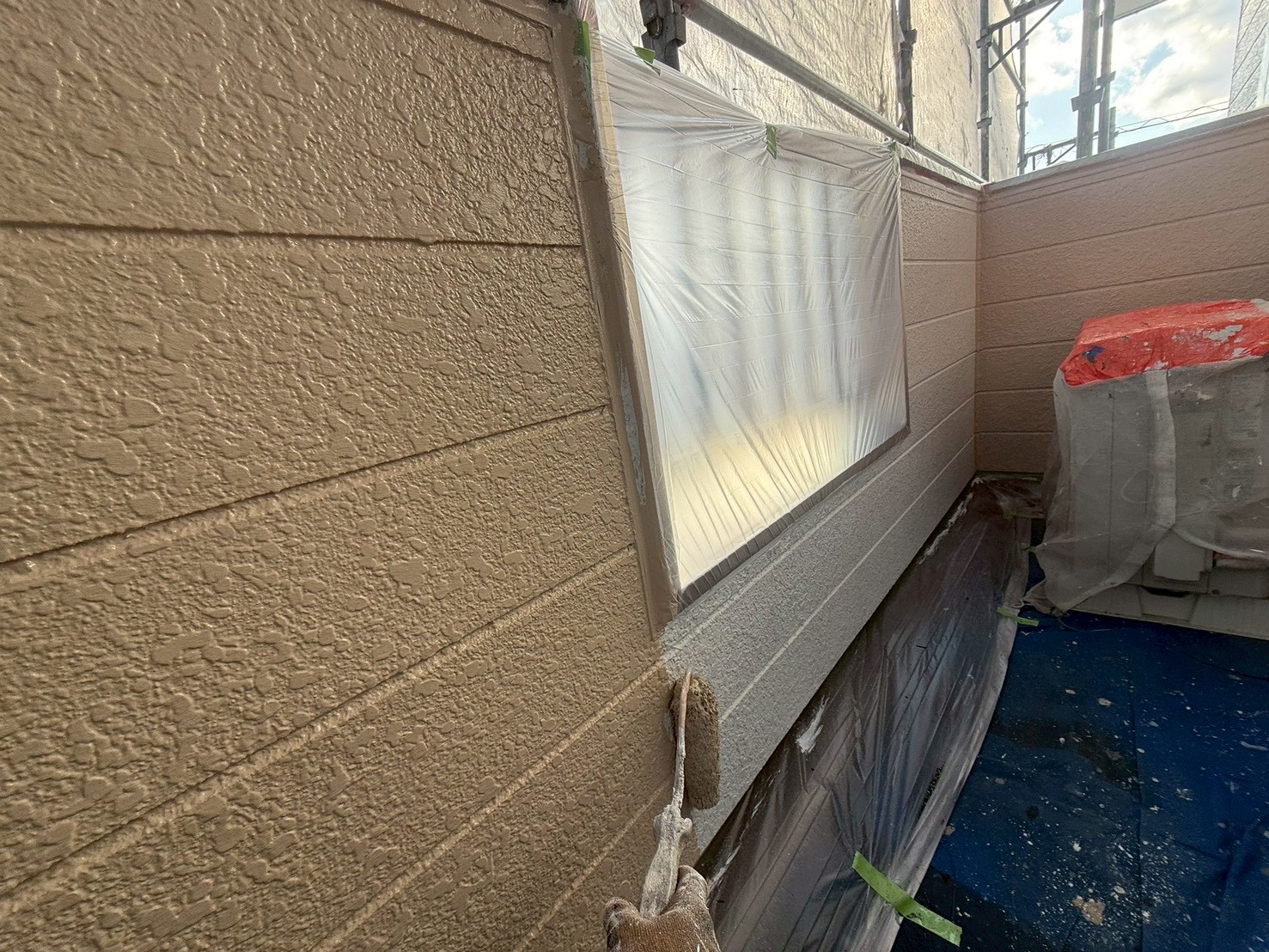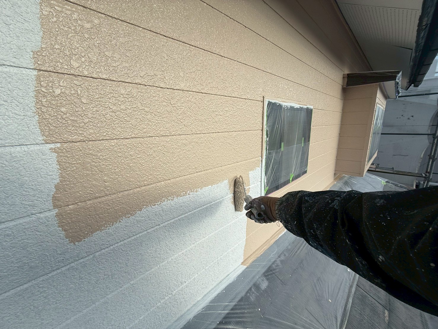 外壁・中塗り・上塗り仕上げ:エスケープレミアムシリコンラジカル塗料の施工です。