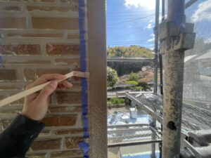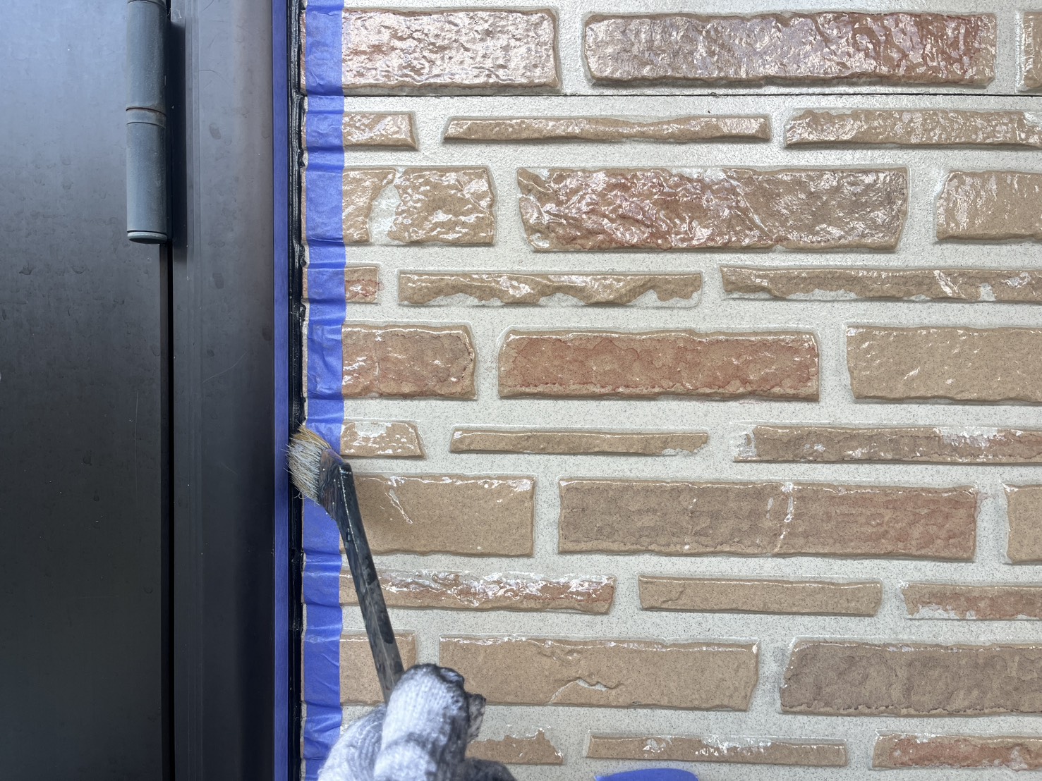 外壁・クリアー仕上げ部・化粧コーキング打ち替え施工:専用プライマー(接着剤)の施工です。