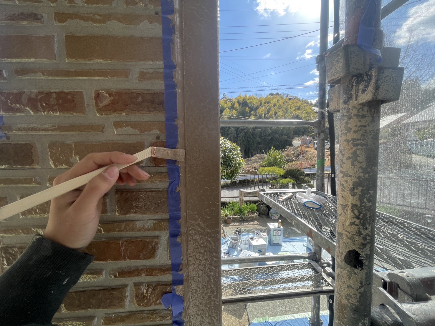 外壁・壁面窓廻り、散り際のライン出しの施工です。