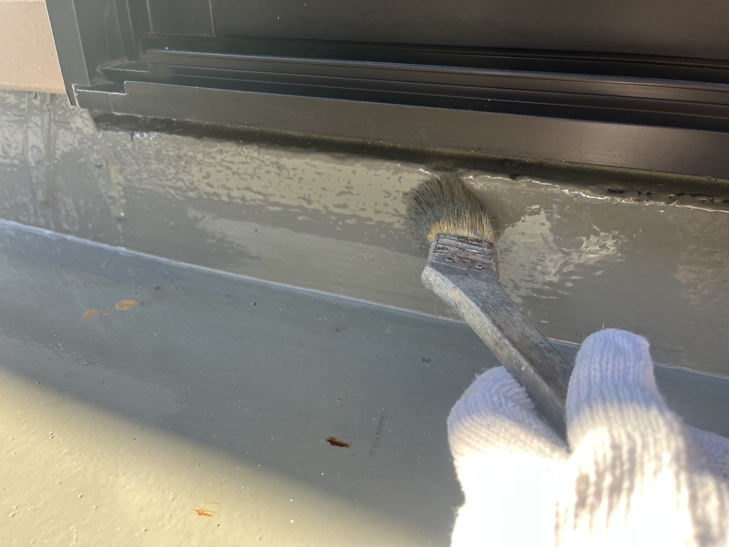 外壁・2Fベランダ床面・全面、専用プライマー(接着剤)の施工です。