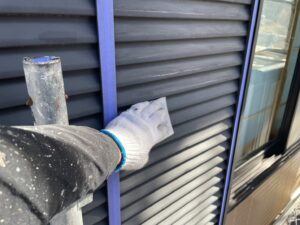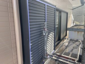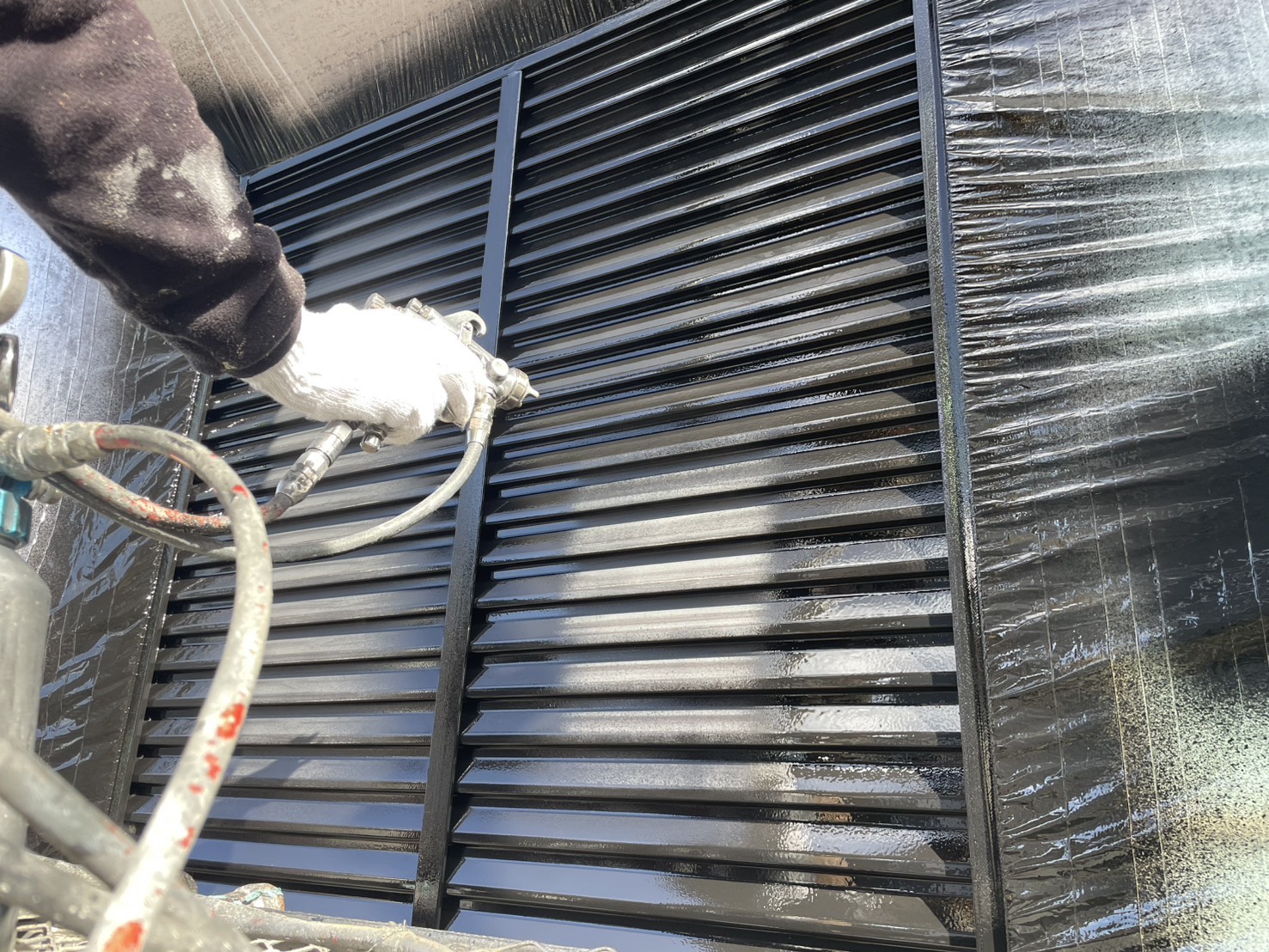 外壁・戸袋の吹き付け施工:エスケープレミアムルーフSiブラックの施工です。