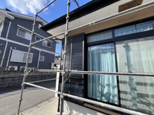 本日の作業は、外壁・屋根・付帯部:最終確認検査後、架設足場解体・手直し・仕上げ施工です。