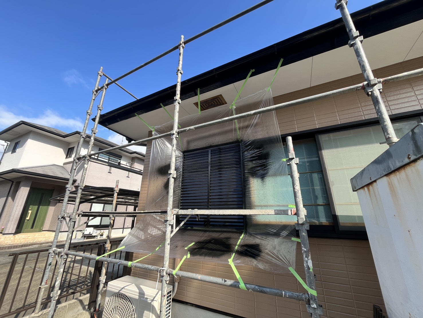本日の作業は、外壁・手直し掃除と屋根・付帯部の施工です。