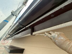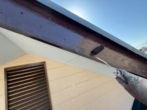 外壁・切妻破風板・ケレン処理施工後、下塗り(ラジカル塗料)施工です。