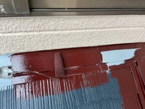 外壁・雨切り部・細かい部分のケレン処理後、下塗り(ラジカル塗料)施工です。