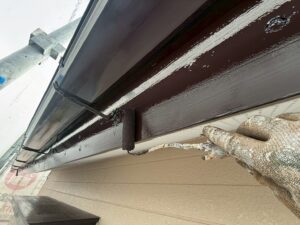 外壁・破風板(幕板)・ケレン処理施工後、下塗り(ラジカル塗料)施工です。