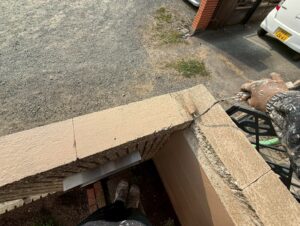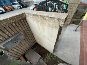 外部・門柱(両面)笠木天端のラジカル塗料の施工前です。