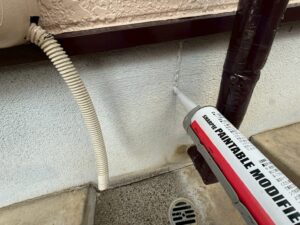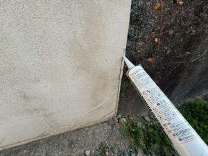 外壁・基礎部・割れ、欠け、ヒビのコーキング処理です。