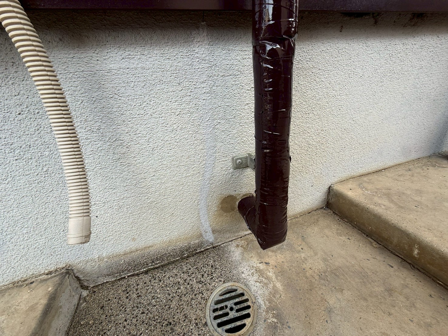 外壁・戸袋部・エスケープレミアムルーフSi・コーヒーブラウン色の施工前です。