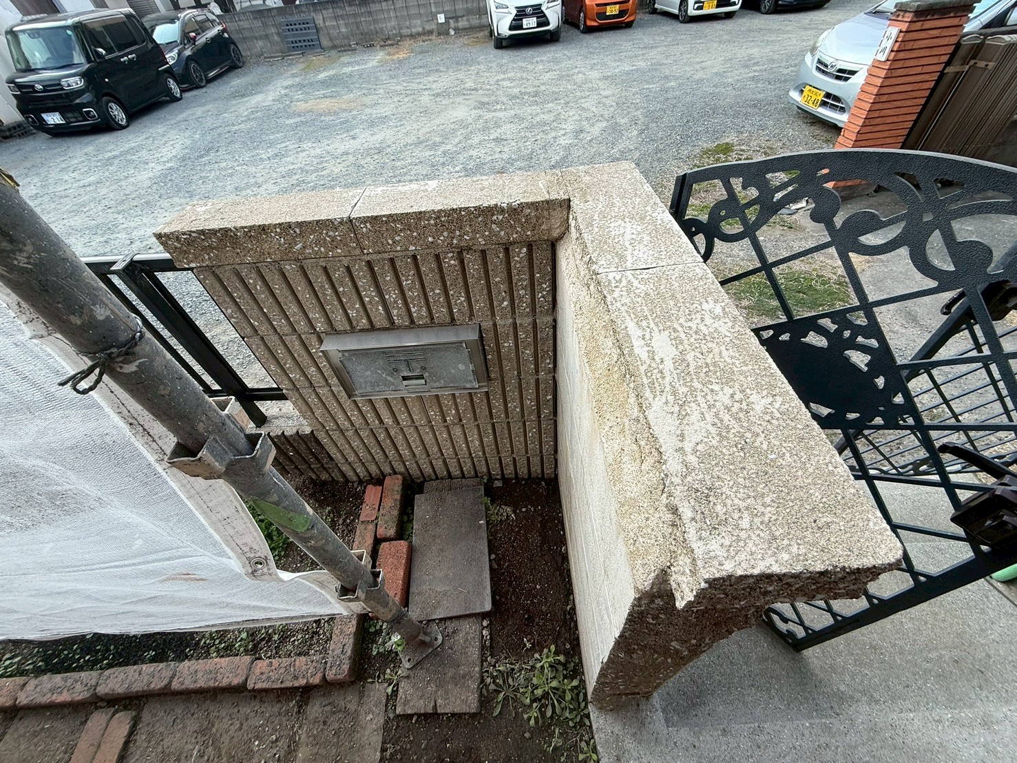 外部・門柱(両面)笠木天端のラジカル塗料の施工前です。