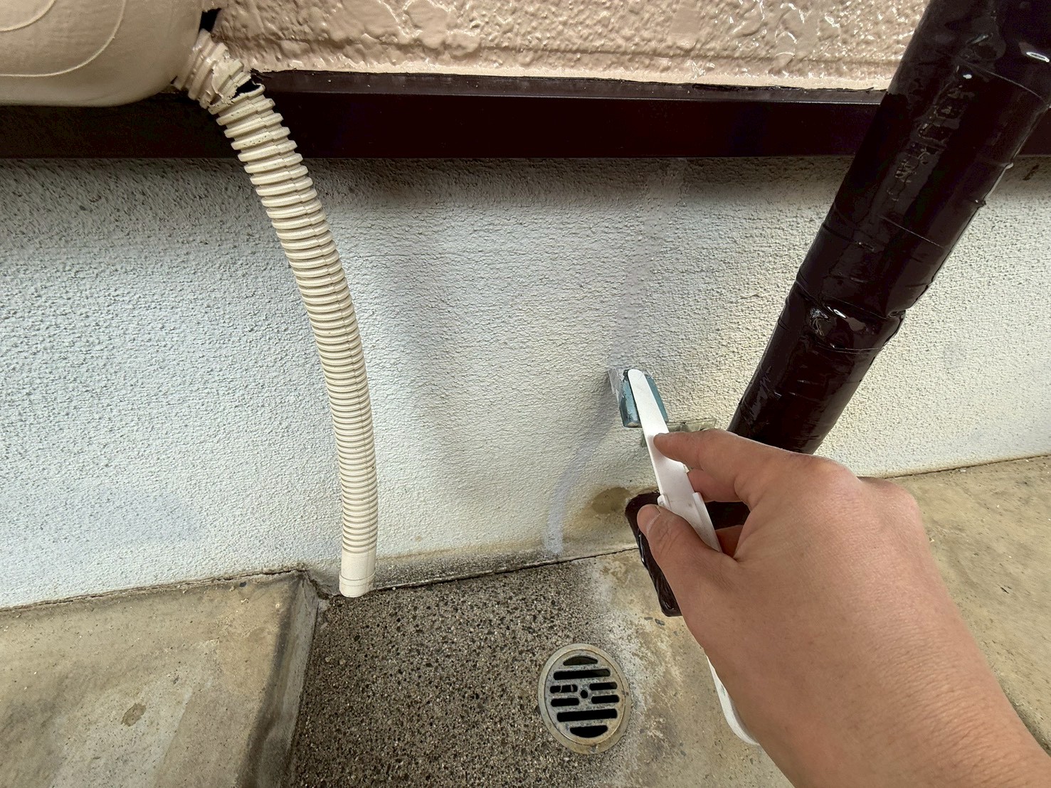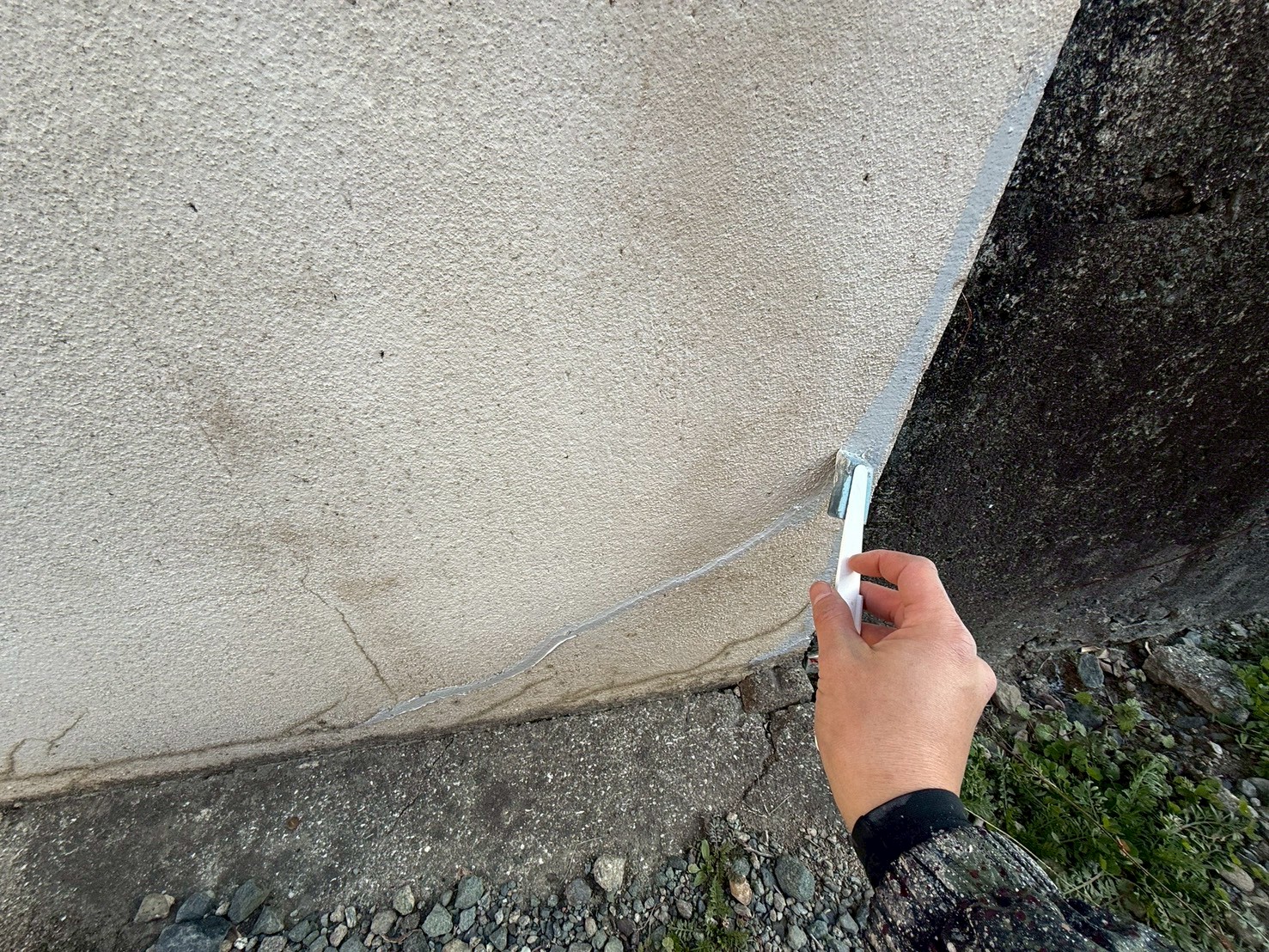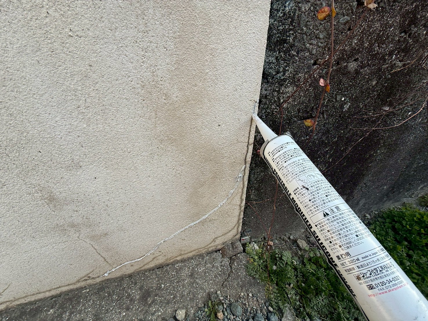 外壁・基礎部・割れ、欠け、ヒビのコーキング処理です。