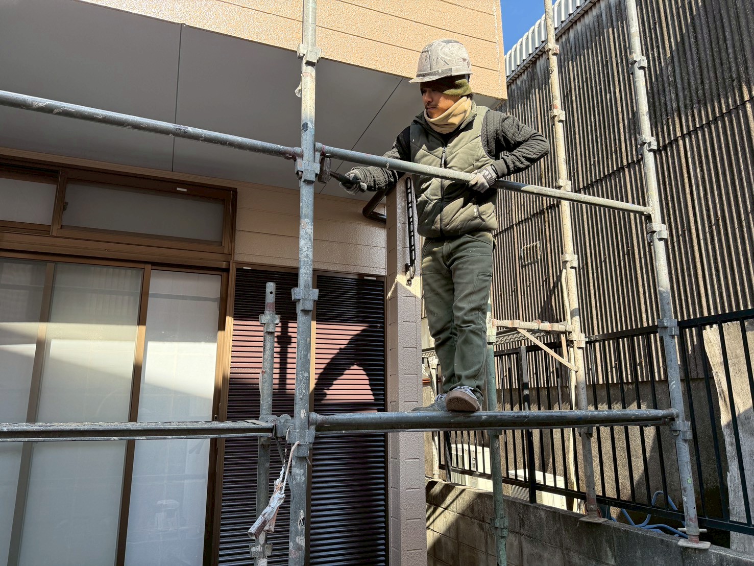 外壁・屋根・付帯部:最終確認検査後、架設足場解体・片付け・積み込みの施工です。