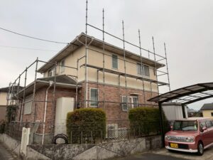 外壁・屋根:北面側・架設足場組み上げと飛散防止ネット取り付けの施工前です。