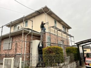本日の作業は、外壁・屋根・付帯部・土間・その他:バイオ高圧洗浄施工です。