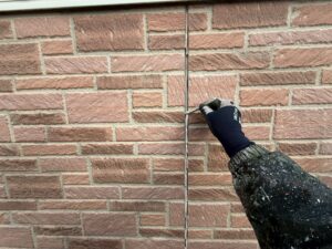 外壁・2F壁面・旧コーキング材撤去作業です。