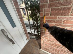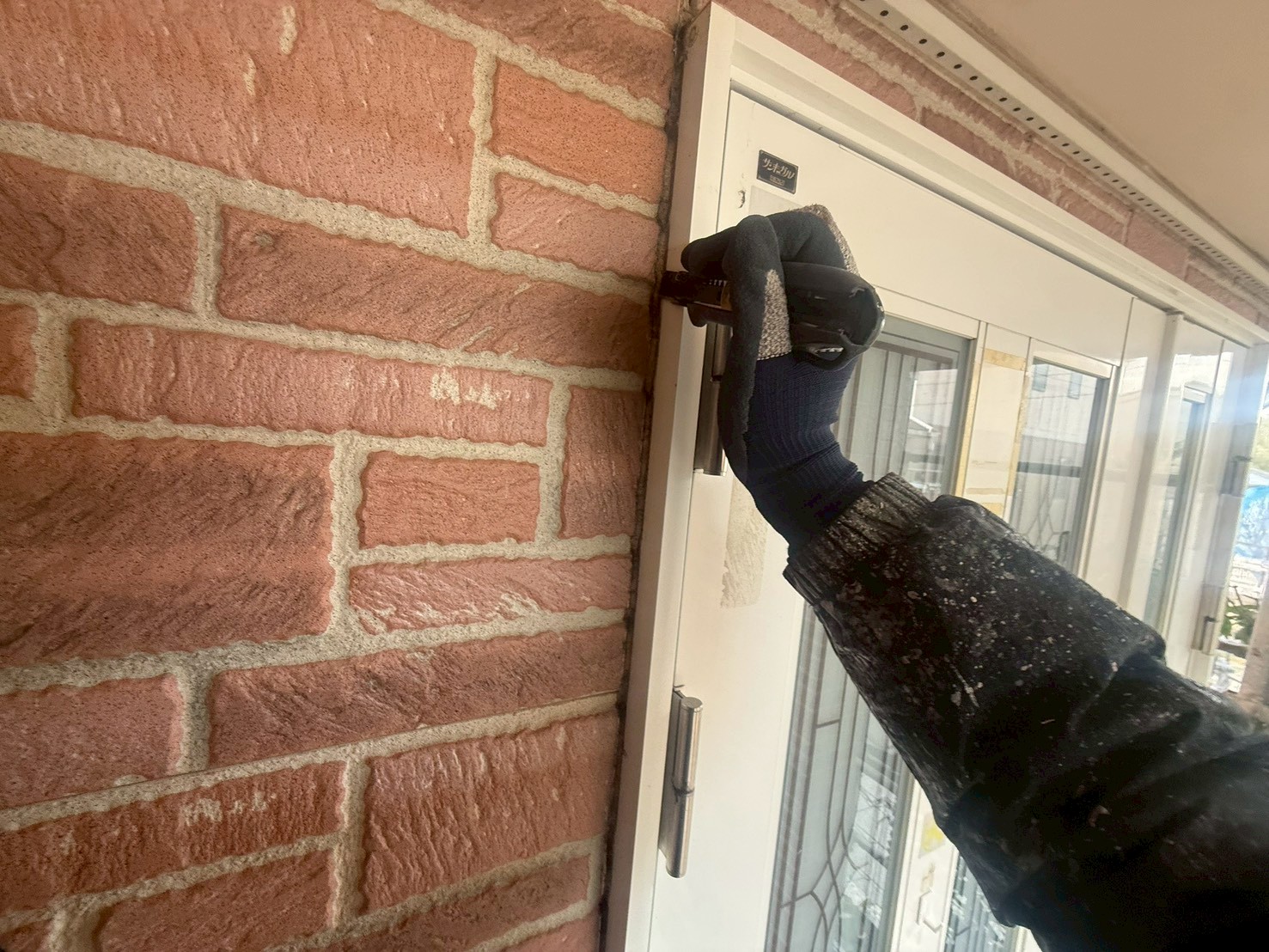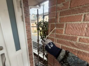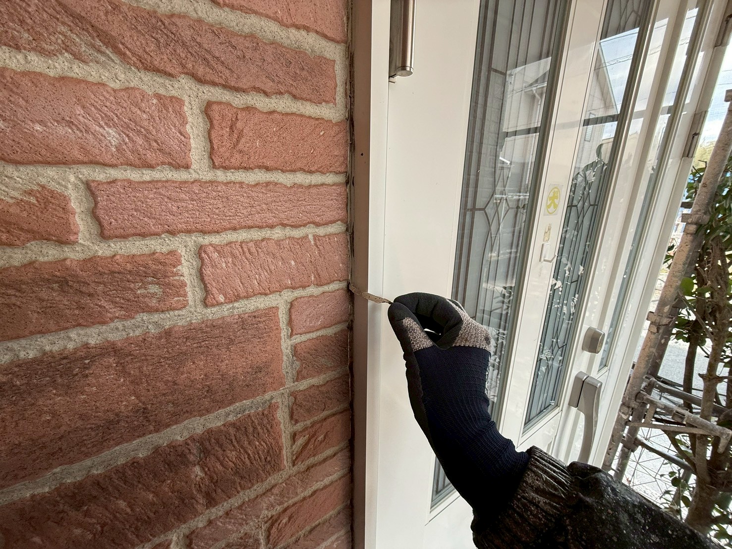外壁・1F玄関ドア廻り・旧コーキング材撤去作業です。