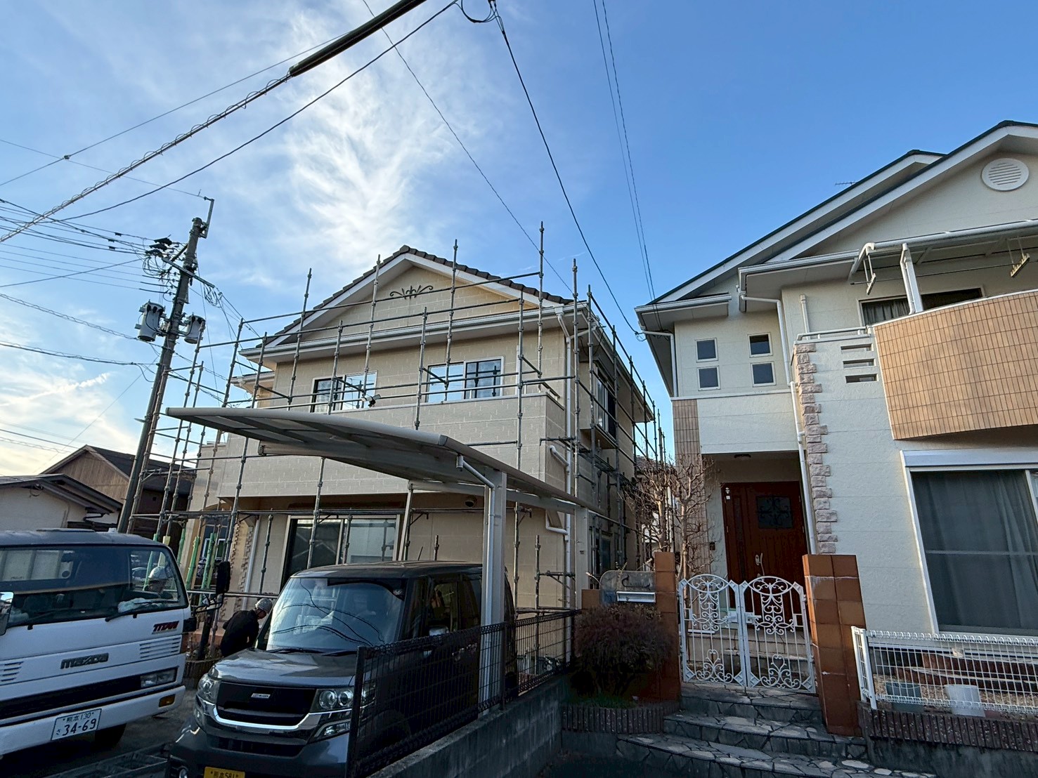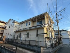 外壁・架設足場組み上げの施工です。