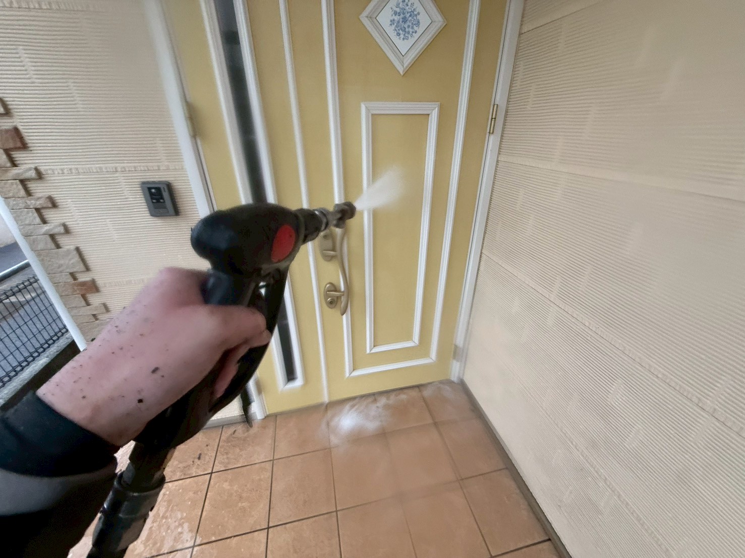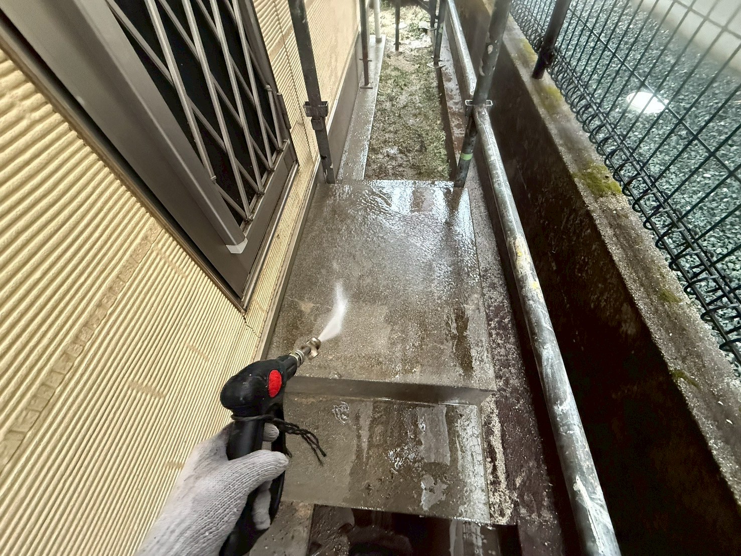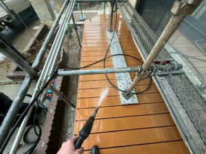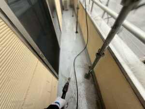 外壁・バイオ洗浄後、高圧洗浄施工です。